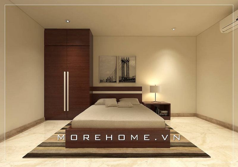 Thiết kế giường ngủ thấp kết hợp tab đầu giường liền kề, tạo sự thuận tiện và thoải mái cho gia chủ trong quá trình sử dụng