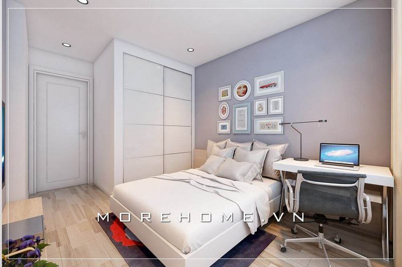 Giường ngủ chung cư hiện đại được thiết kế với chất liệu gỗ công nghiệp An Cường tại điểm nhấn nhẹ nhàng cho không gian nghỉ ngơi của gia chủ