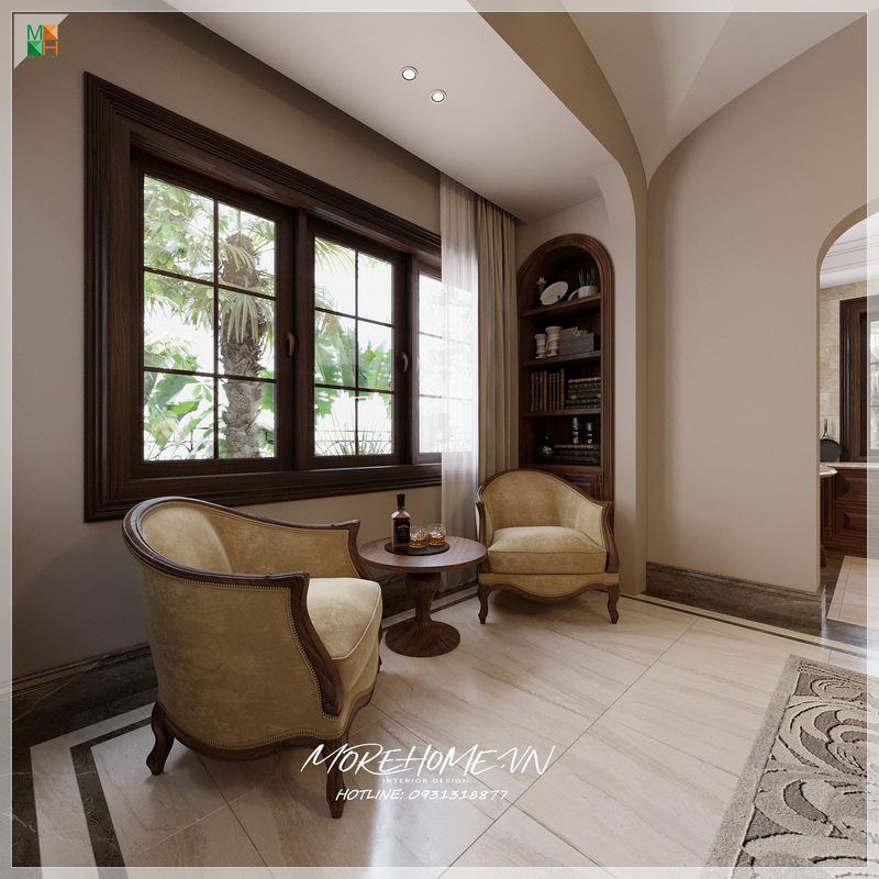 Không gian nghỉ ngơi được thiết kế theo phong cách cổ điển sang trọng và quý phái, giúp gia chủ thư giãn sau những giờ làm việc mệt mỏi.