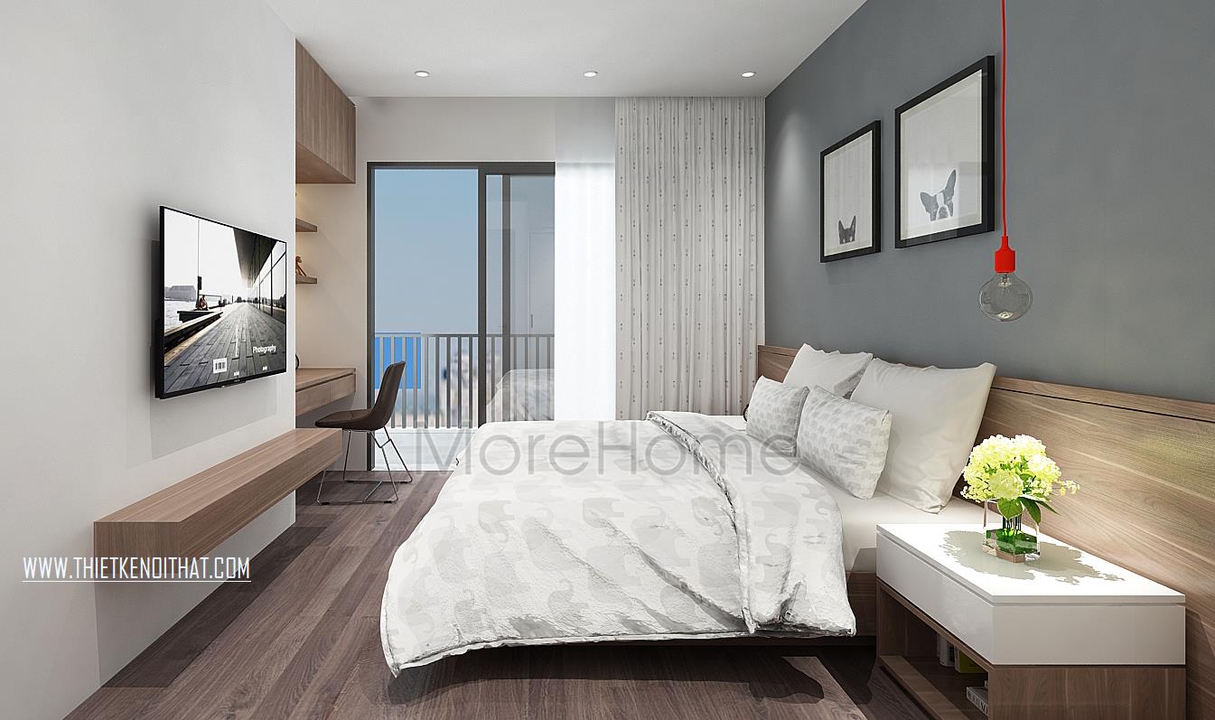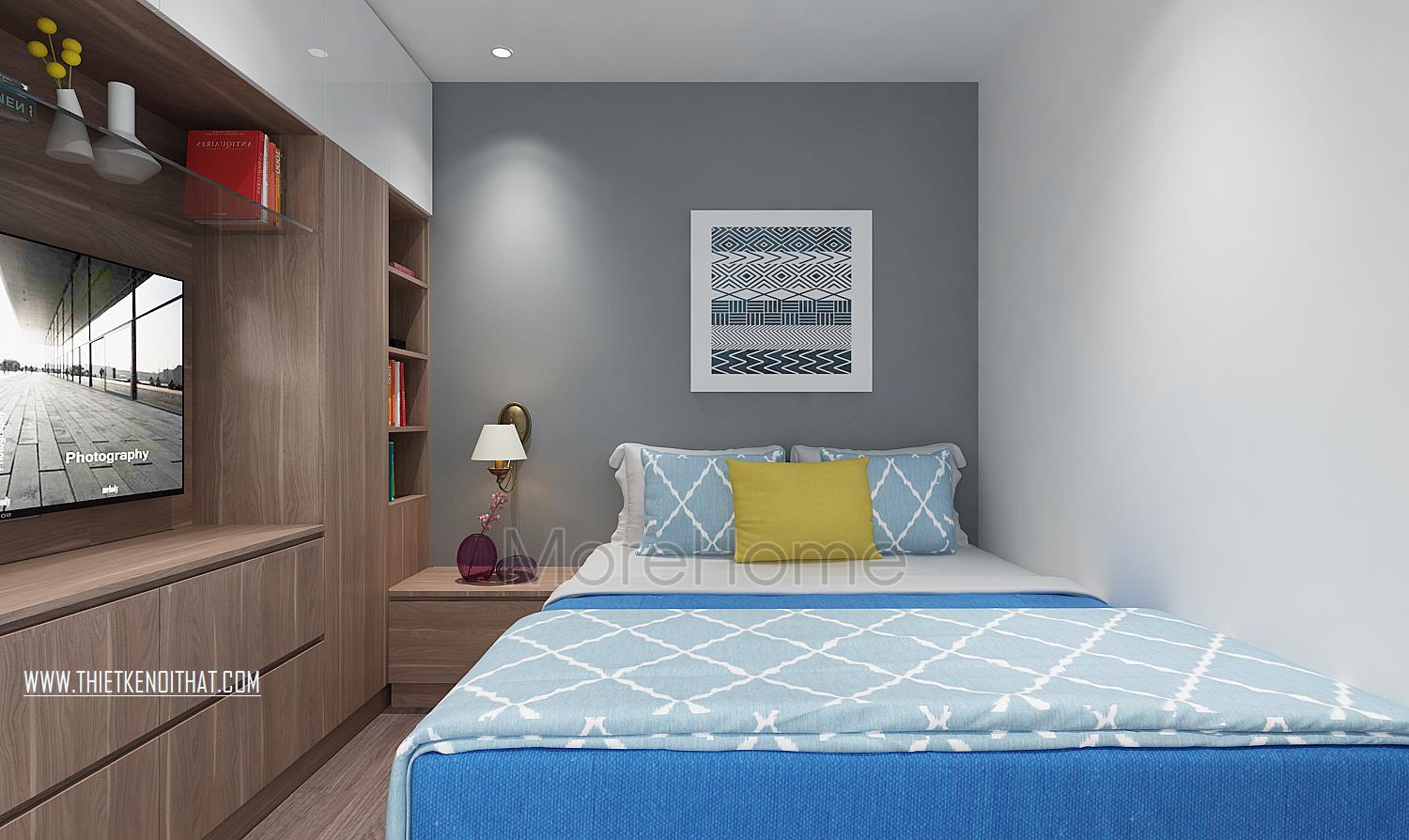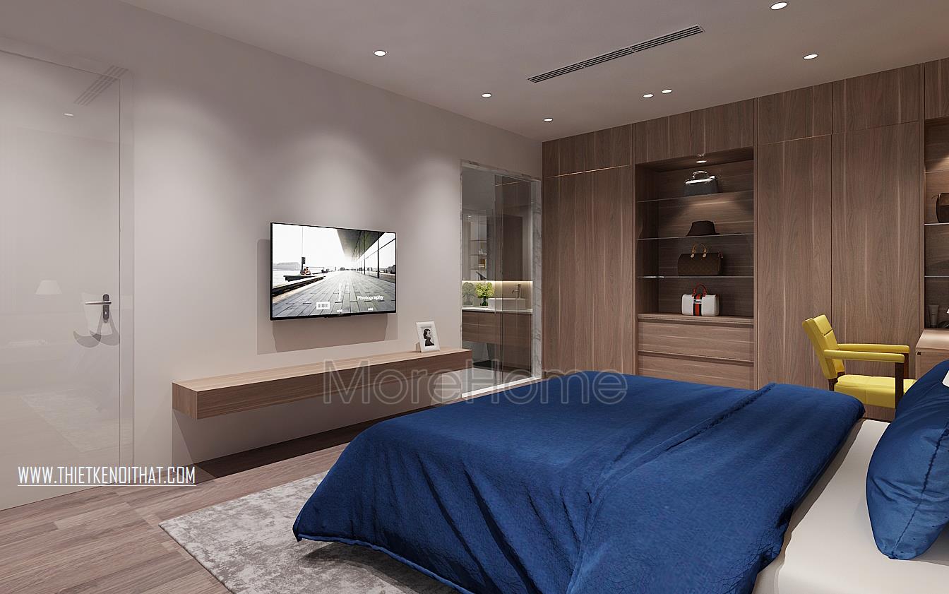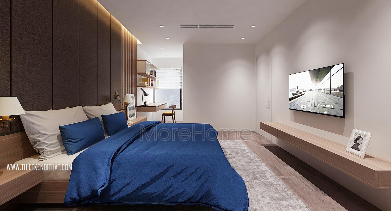 Cuối cùng là thiết kế nội thất phòng ngủ phong cách hiện đại. Gỗ là vật liệu chính được kiến trúc sư sử dụng trong thiết kế này. Kệ tủ được thiết kế riêng, kết hợp, tạo thành một tổ hợp thiết kế nội thất hoàn hảo giúp tạo điểm ấn tượng và tăng tính thẩm mỹ cho căn phòng. Không gian rộng rãi với các khu làm việc, nghỉ ngoi riêng biệt giúp tạo sự riêng tư và thuận tiện cho gia chủ.