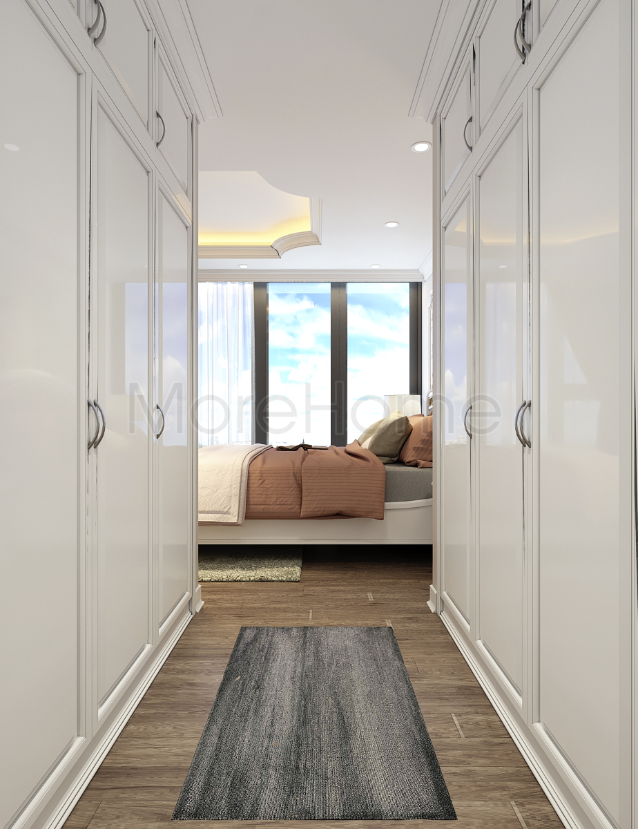 Một trong những đặc điểm nổi bật của căn hộ chung cư Hoàng Anh Gia Lai là thiết kế tủ gỗ âm tường. Thiết kế tủ cánh linh hoạt, kết hợp kệ để đồ, đây là một trong những thiết kế nội bật điển hình giúp tiết kiệm không gian lại không làm ảnh hưởng đến tính công năng và góp phần lớn tiết kiệm diện tích cho căn hộ.